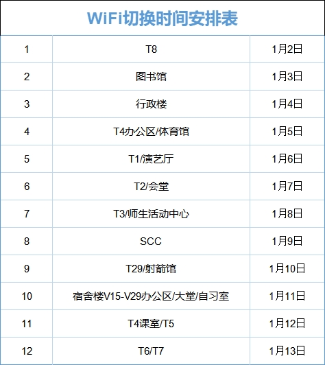 2025年1月2日起,新旧SSID将并存。切换期间,若您所在区域已启用新SSID(UIC),请优先选择连接。